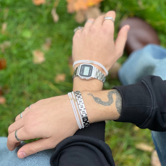 Armbåndsett for Gutter - Hvit med Lyseblå Perler