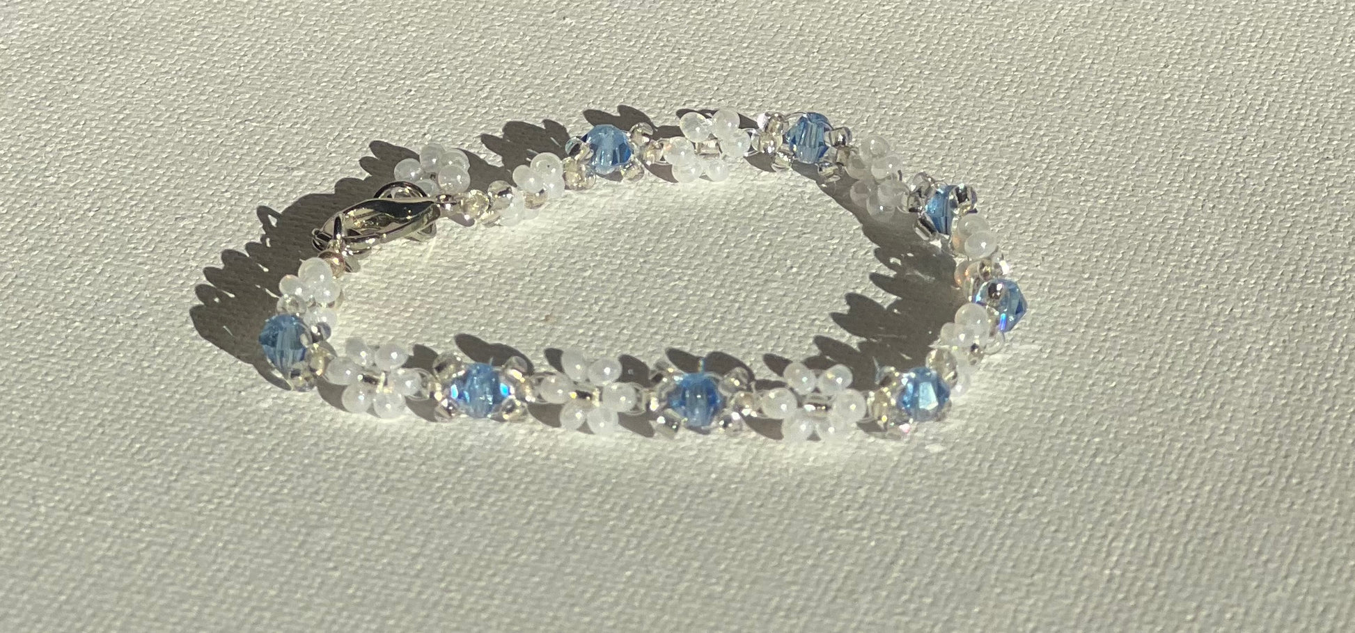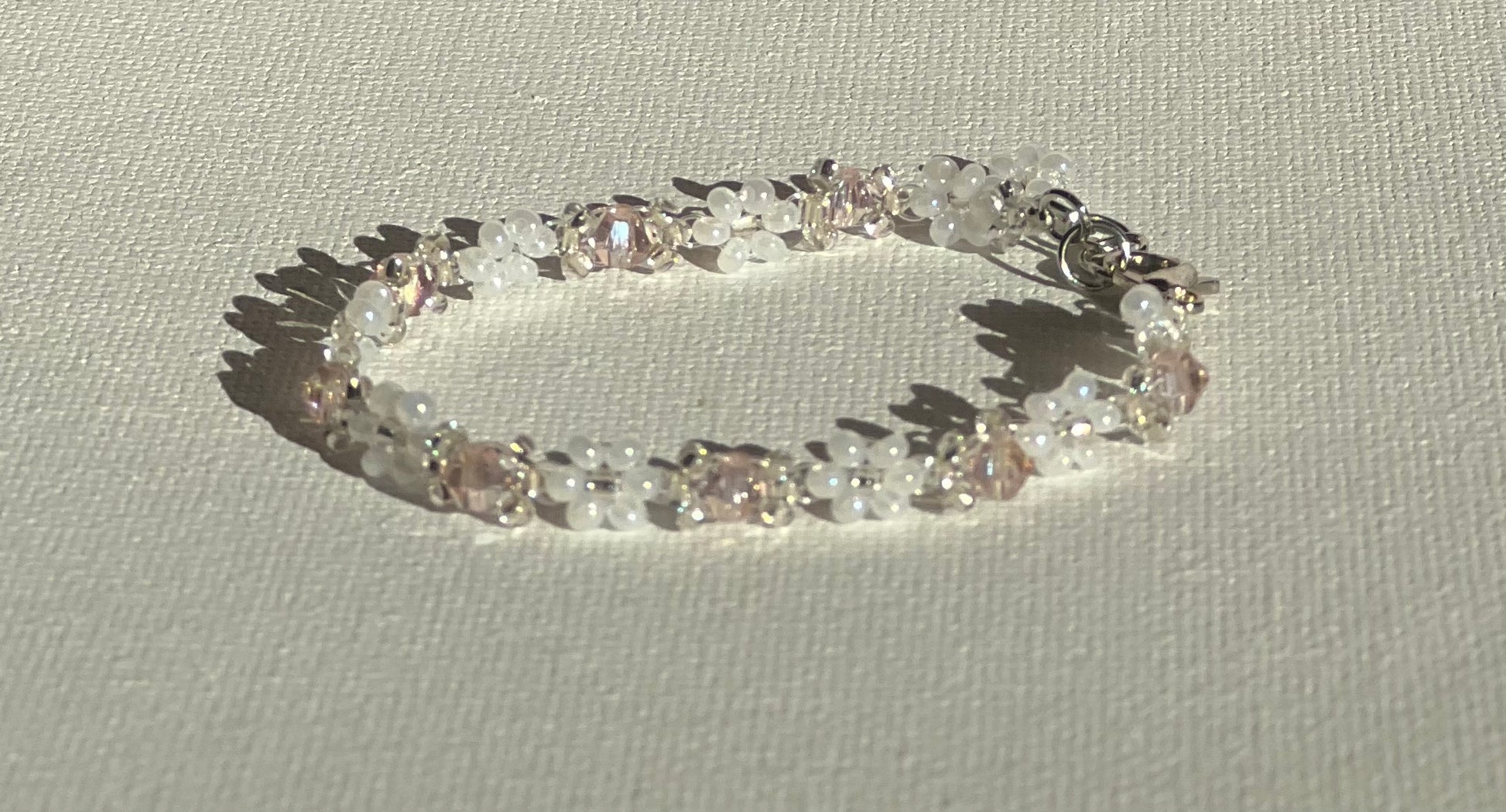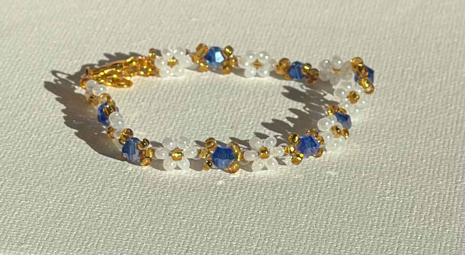A delightful assortment of handcrafted beaded bracelets, each showcasing charming white daisy-like flowers and a spectrum of colorful gemstones. These unique bracelets combine playful floral motifs with vibrant beads, creating eye-catching accessories perfect for adding a touch of whimsy and color to any ensemble.